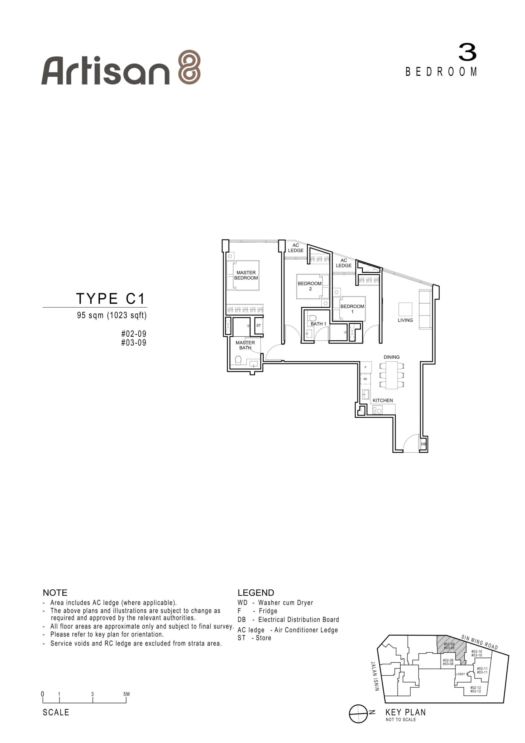 | 3BR | C1 | 1,023sqft (95sqm) |